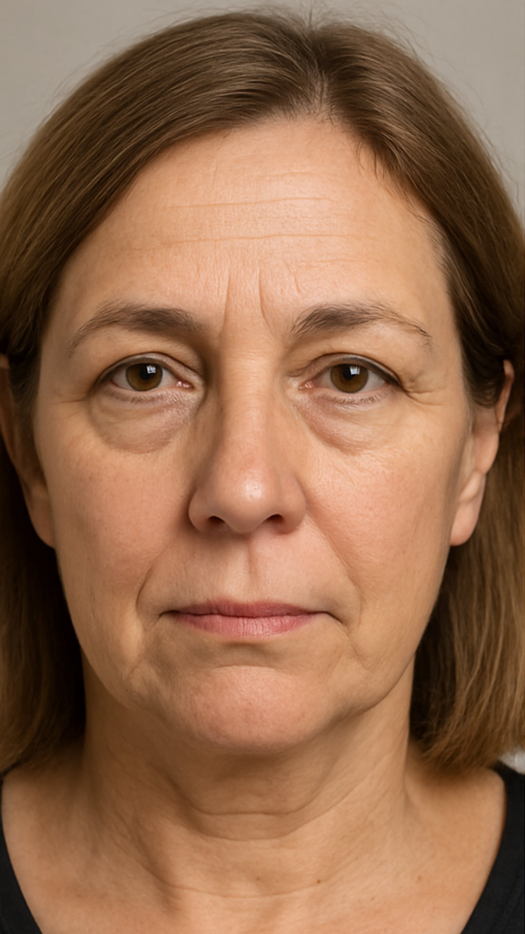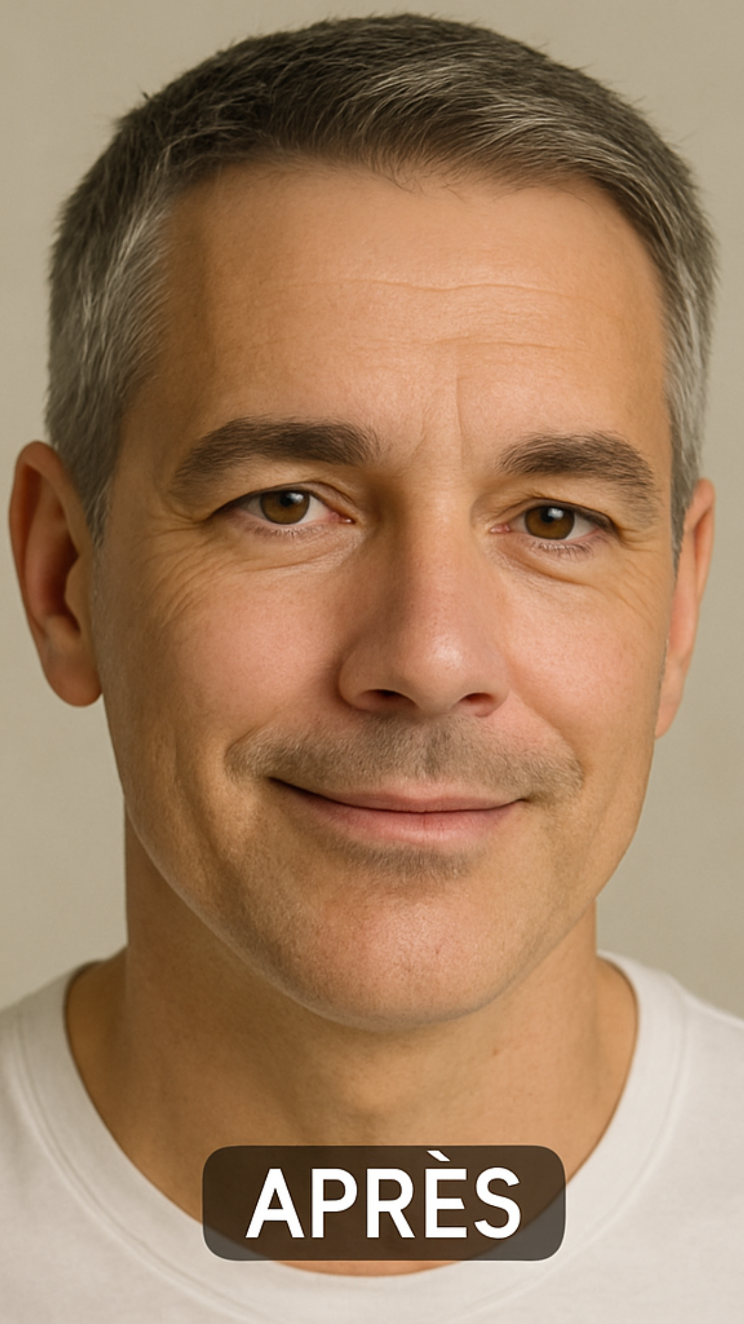 Avant l’utilisation de la crème, la peau présente souvent des rides marquées, un manque de fermeté, un teint terne et des cernes plus visibles. Le visage paraît fatigué, moins lumineux et les signes de l’âge s’installent progressivement : ridules autour des yeux, perte d’élasticité, sécheresse ou texture inégale.